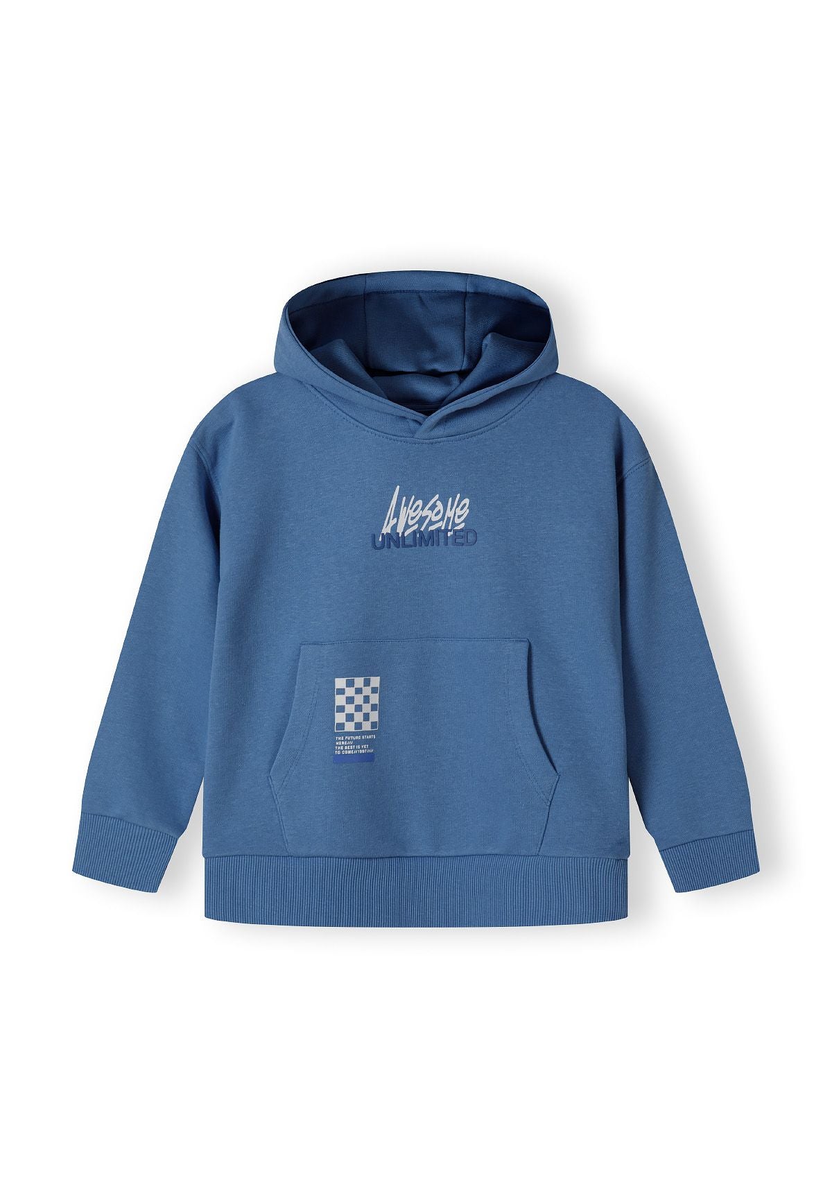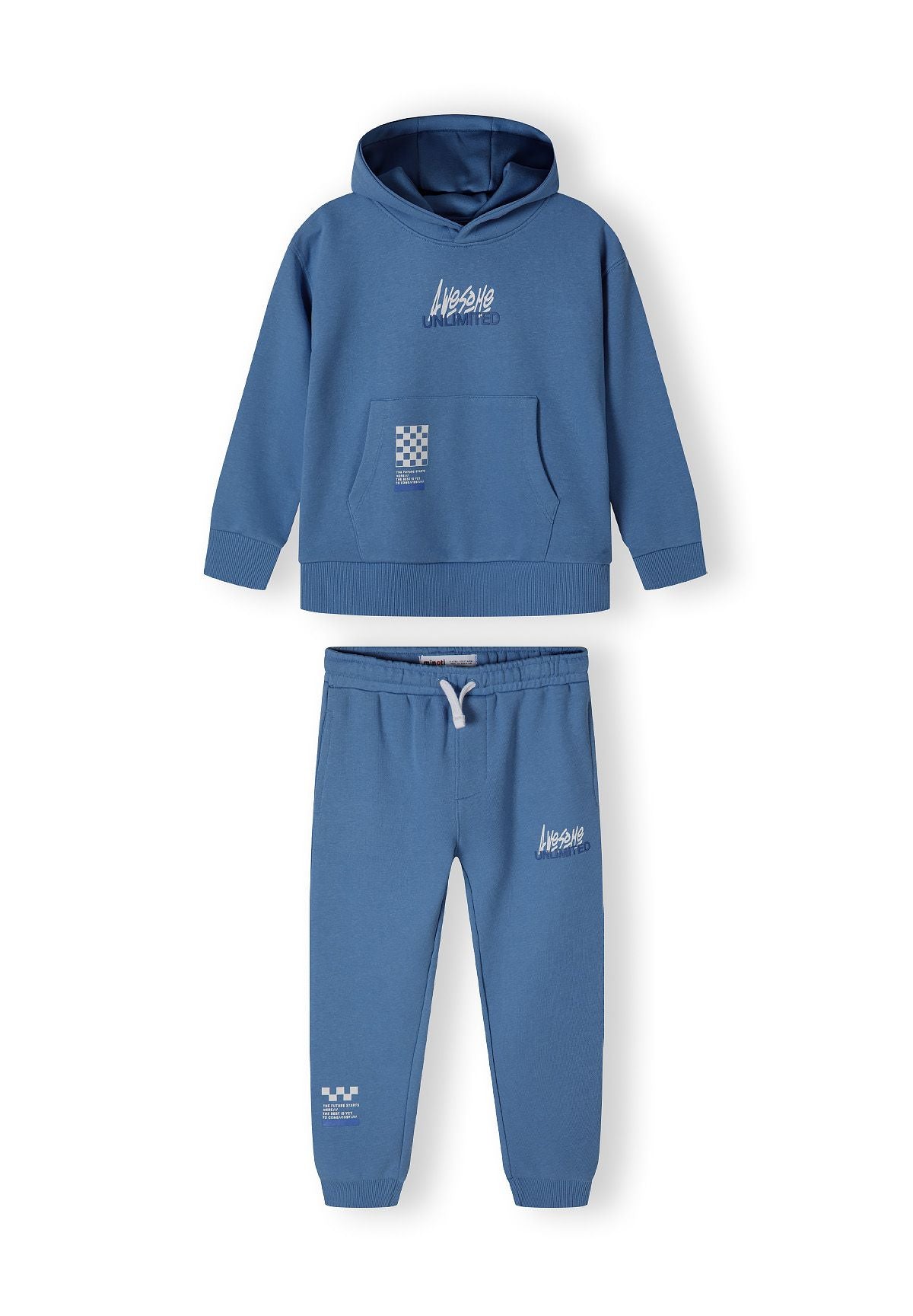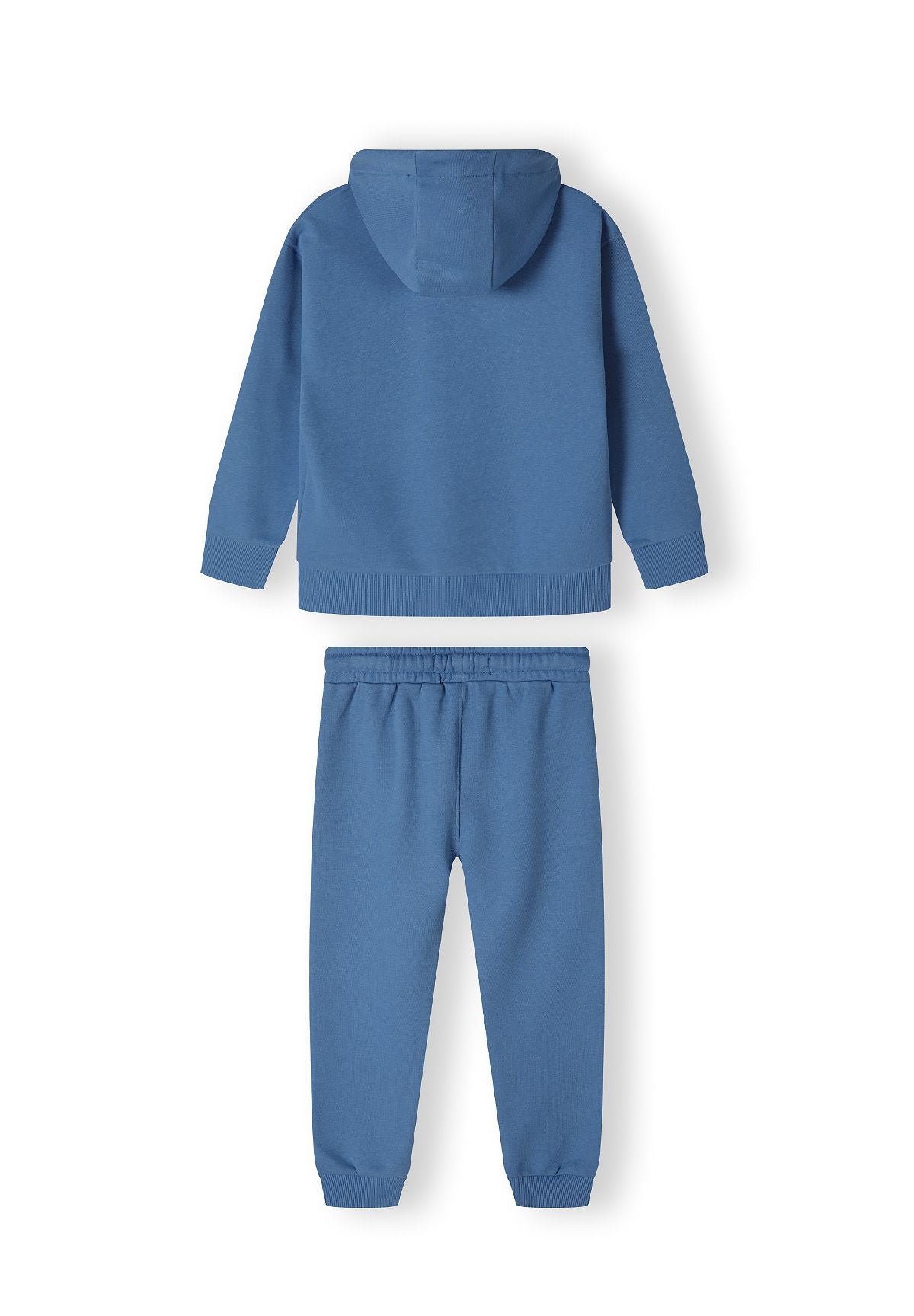 Zestaw odzieży dla chłopców zaprojektowany na codzienne, casualowe noszenie wiosną i latem, składający się z bluzy z kapturem z polaru oraz dopasowanych spodni dresowych. Zestaw wykonany jest z lekkiego bawełnianego polaru, który zapewnia komfort i przewiewność, idealne dla aktywnych dzieci. Niebieska bluza posiada funkcjonalny kaptur dla dodatkowej ochrony, kieszeń kangurka idealną do przechowywania drobiazgów, nadrukowane detale z przodu oraz elastyczne mankiety i dół, które gwarantują pewne dopasowanie. Spodnie dresowe wyposażone są w elastyczny pas z regulowanym sznurkiem, co pozwala na idealne dopasowanie, boczne kieszenie dla większej wygody oraz dopasowane nadrukowane akcenty, które współgrają z bluzą. Elastyczne ściągacze przy kostkach utrzymują kształt i ciepło, czyniąc strój praktycznym i wszechstronnym na różne codzienne aktywności.