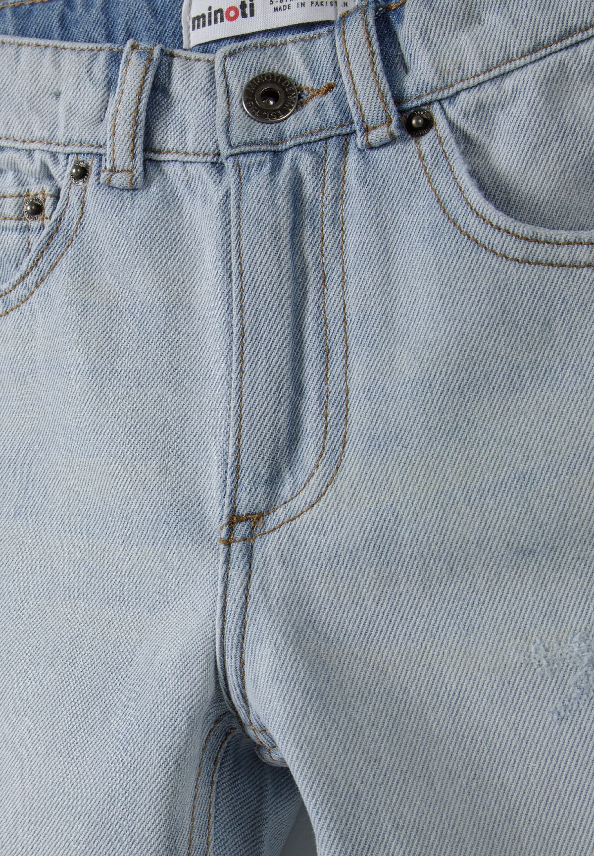Jasnoniebieskie szorty jeansowe dla chłopców z przetarciami i efektem sprania, który podkreśla charakter tkaniny. Wykonane z klasycznego denimu, te szorty łączą trwałość z komfortem, idealne do codziennego noszenia. Wyposażone w tradycyjne przednie i tylne kieszenie, zapewniają praktyczne miejsce na drobiazgi. Zapięcie na zamek i guzik gwarantuje pewne zamknięcie, a wewnętrzny regulowany pas pozwala na dopasowanie do sylwetki według potrzeb. Krój szortów zapewnia swobodę ruchów, wspierając różnorodne aktywności na ciepłe dni. Szorty są łatwe w pielęgnacji, zachowując styl i funkcjonalność przy standardowym praniu, co czyni je praktycznym elementem chłopięcej garderoby na co dzień.