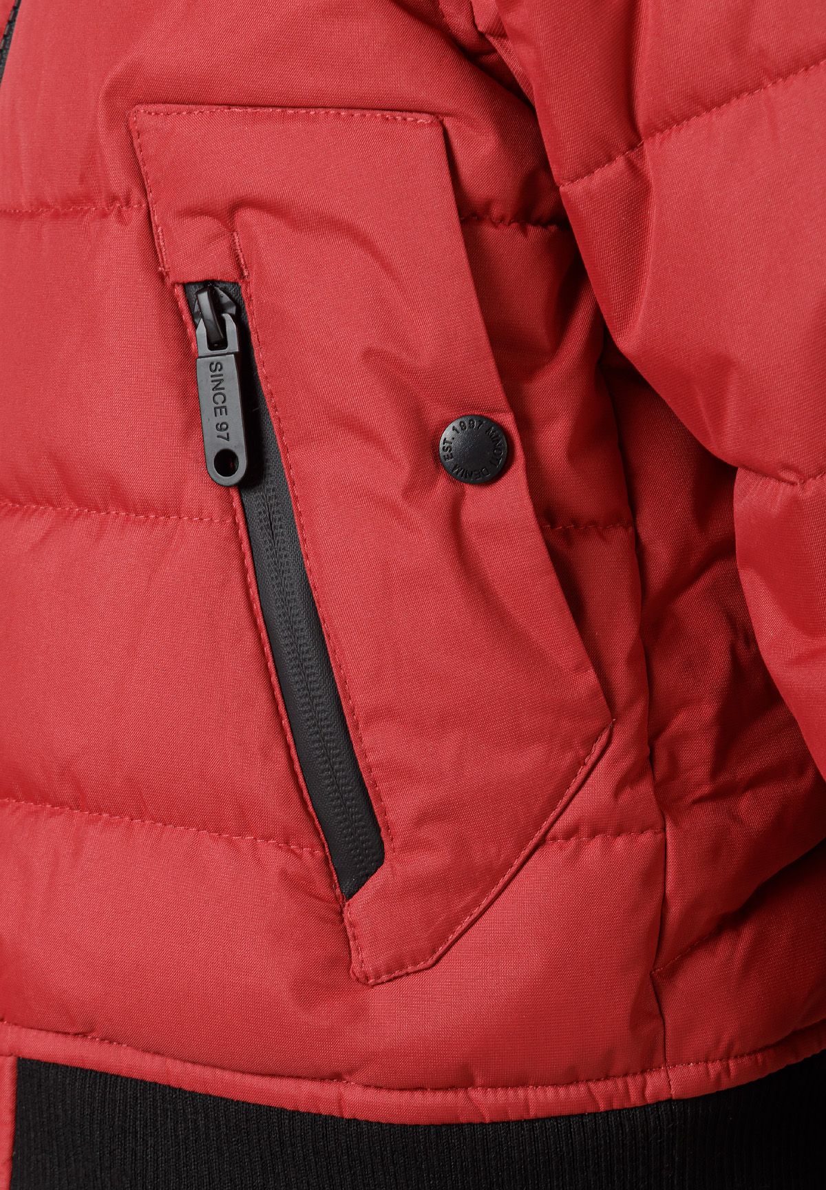 Chłopięca pikowana kurtka z przeszyciami i detalami czerwona 2-14 lat