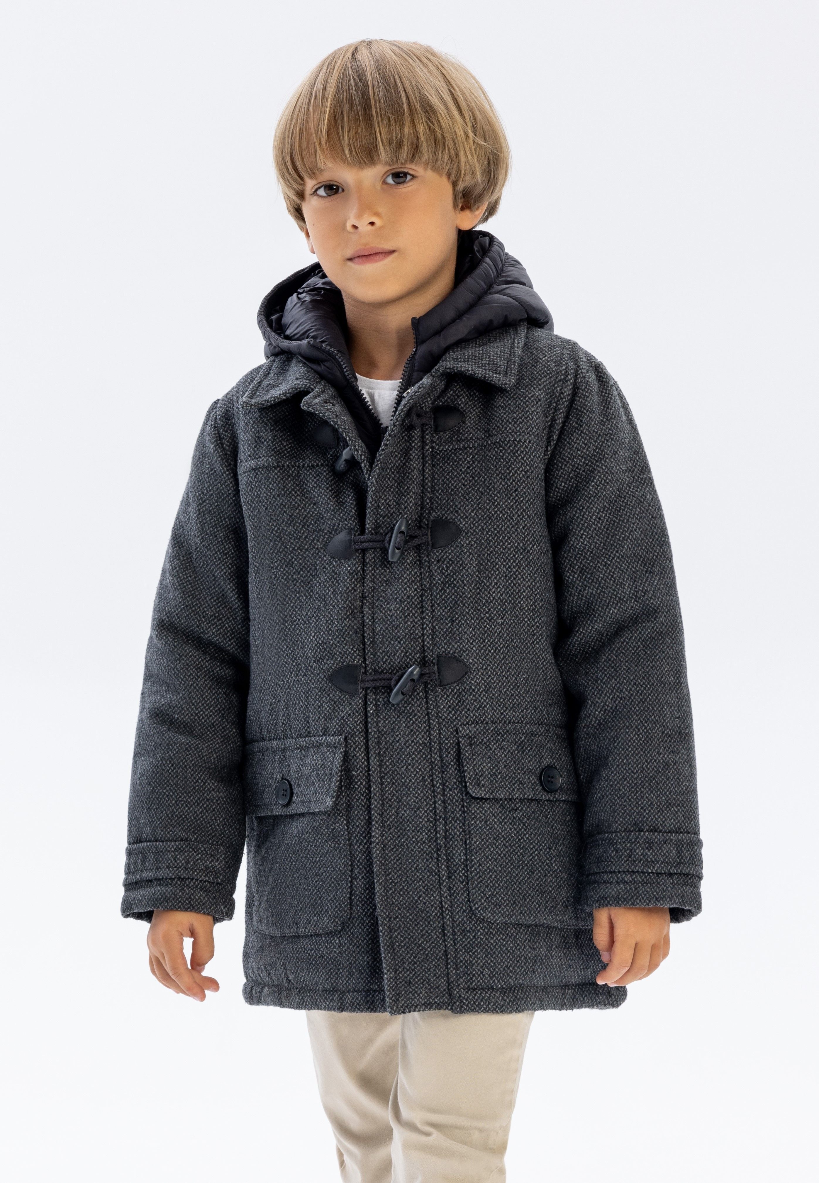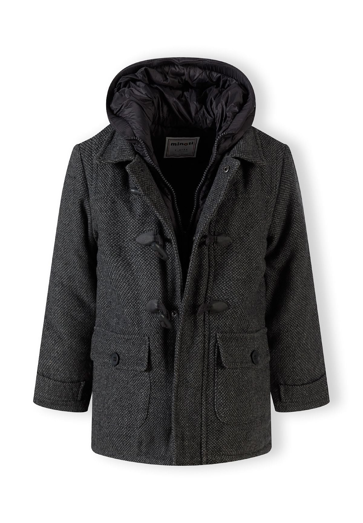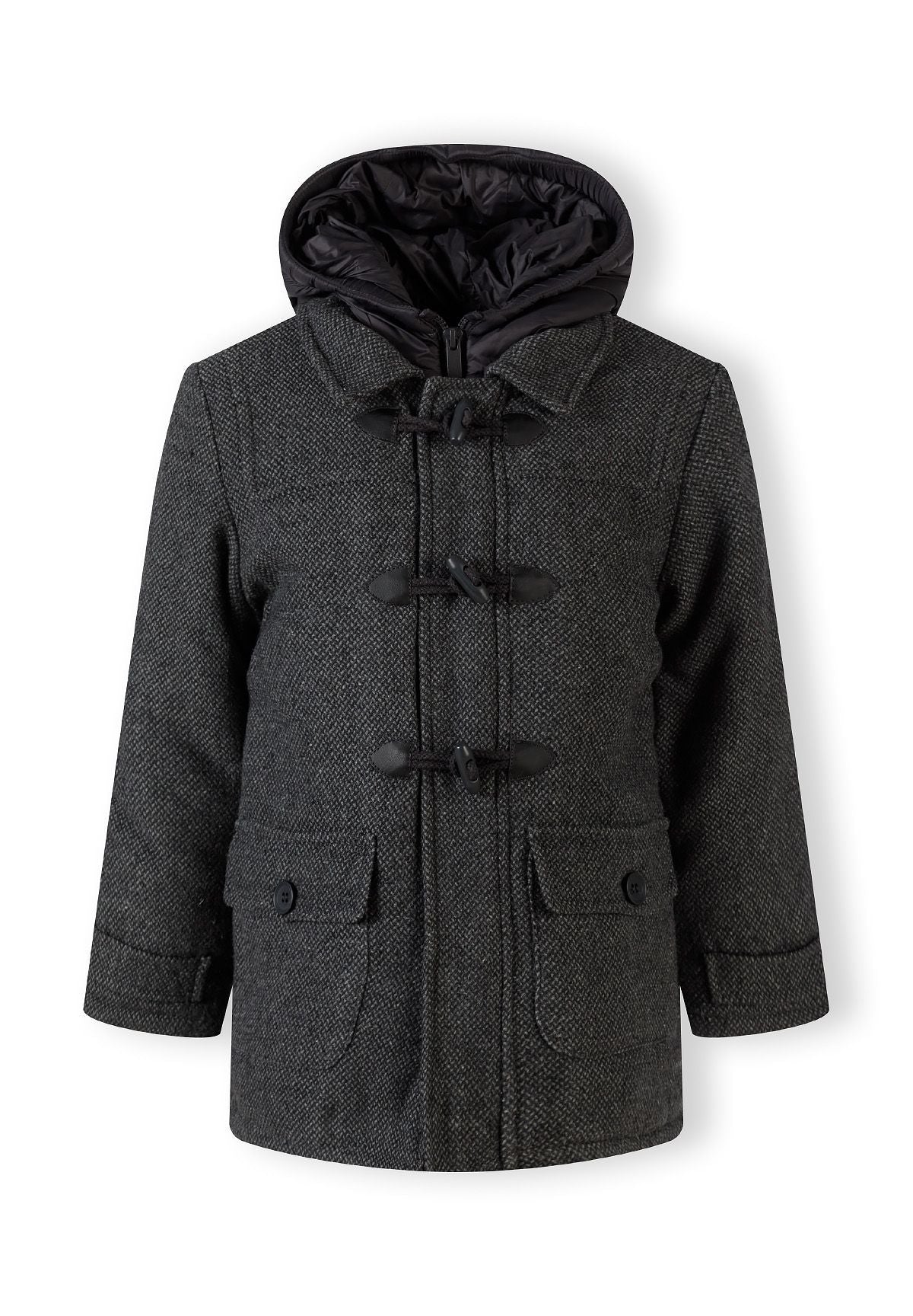 Chłopięcy płaszcz duffle z tweedu z nylonowym kapturem szary 2-14 lat