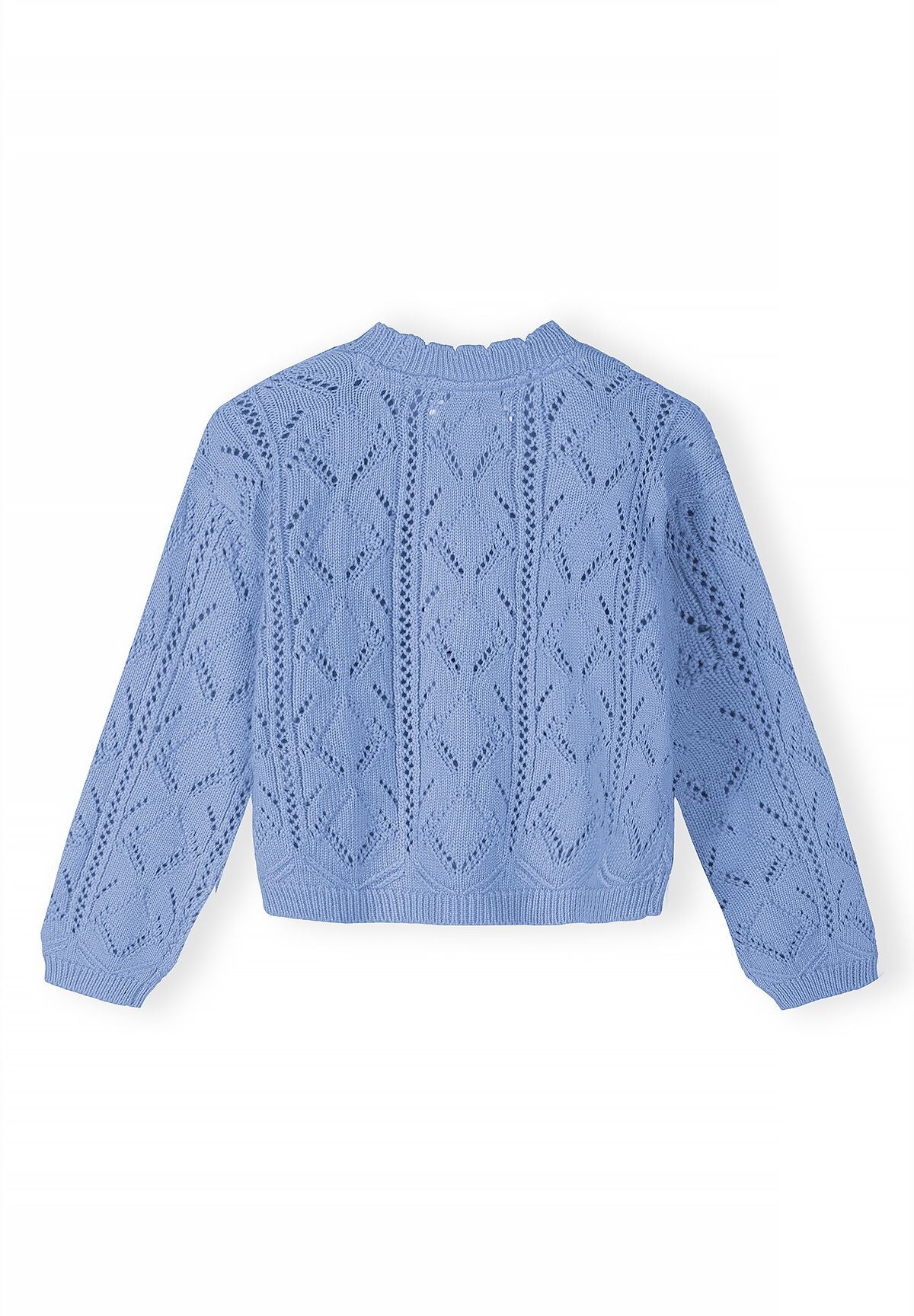 Dziewczęcy kardigan jasnoniebieski bawełniany dzianina pointelle zapinany na guziki 3m-7 lat