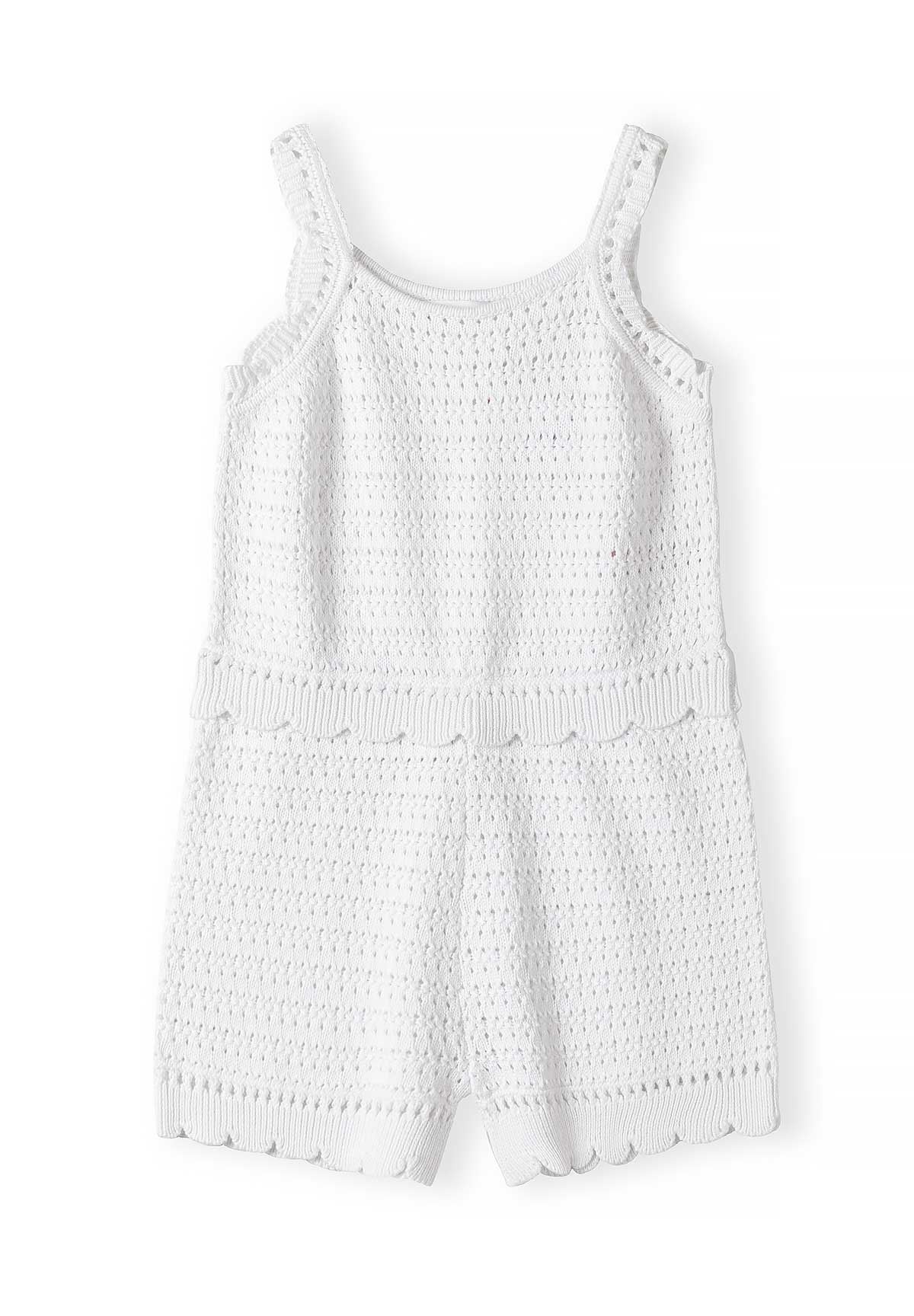 Dziewczęcy biały kombinezon z dzianiny pointelle z falbanką na dole, 3-15 lat