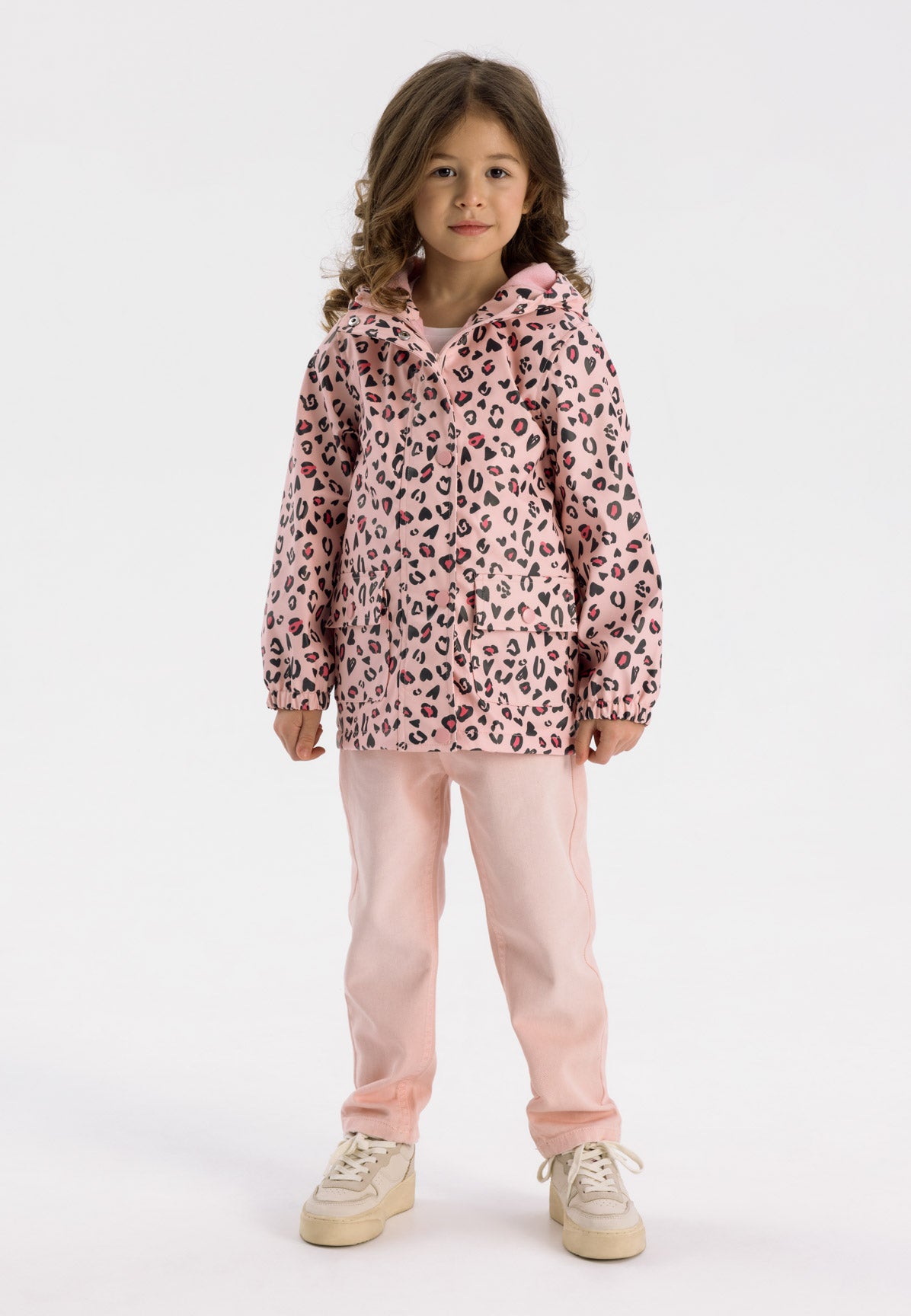Dziewczęca kurtka przeciwdeszczowa z kapturem jasnoróżowa 1-6 lat