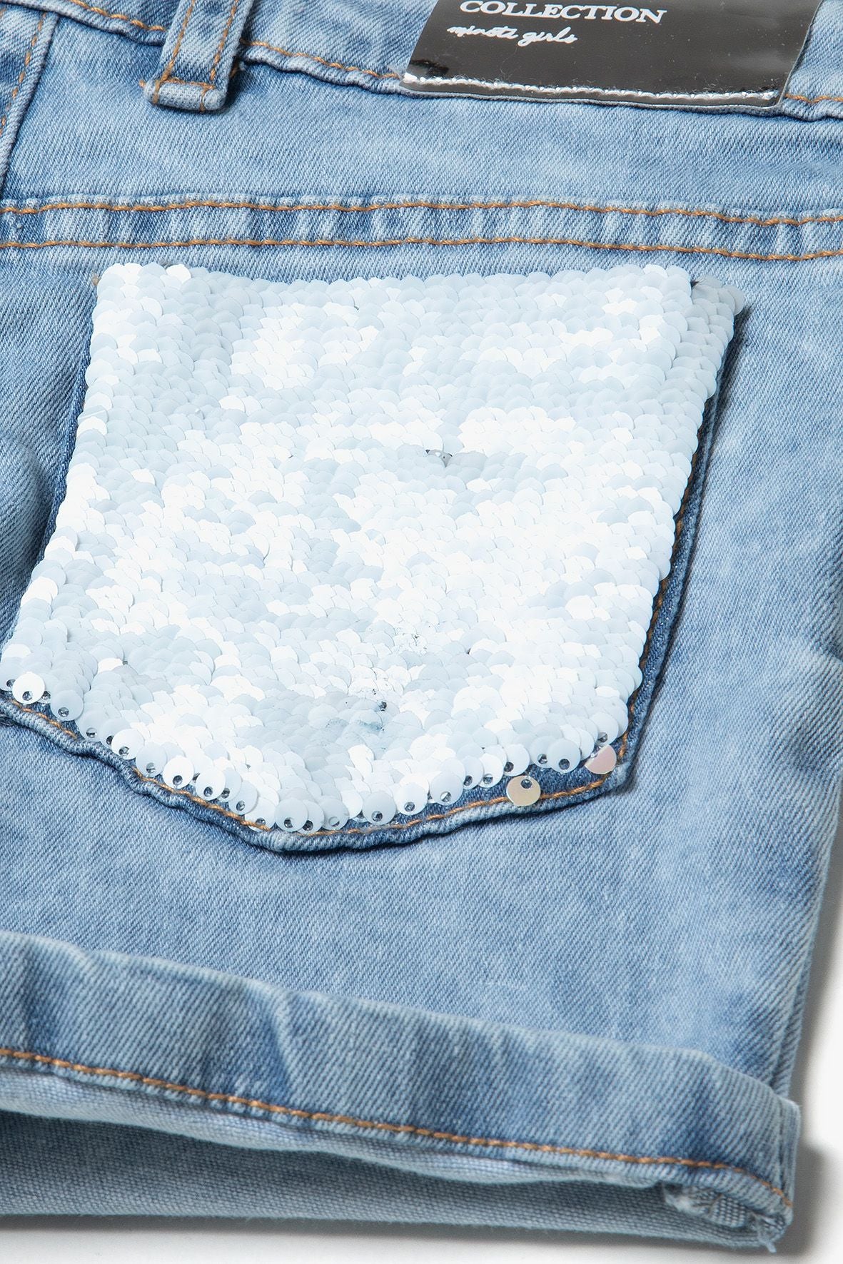 Dziewczęce szorty jeansowe neonowa cekinowa kieszeń granatowe 3-14 lat