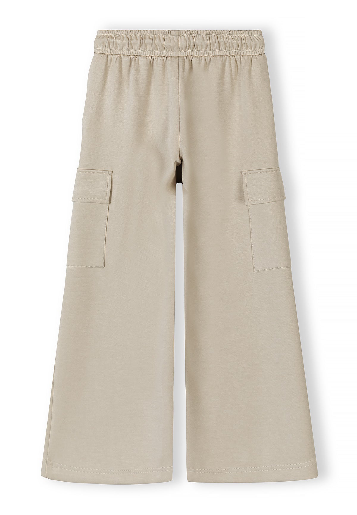 Dziewczęce szerokie spodnie dresowe beżowe z kieszeniami cargo, elastyczna talia, 7-15 lat