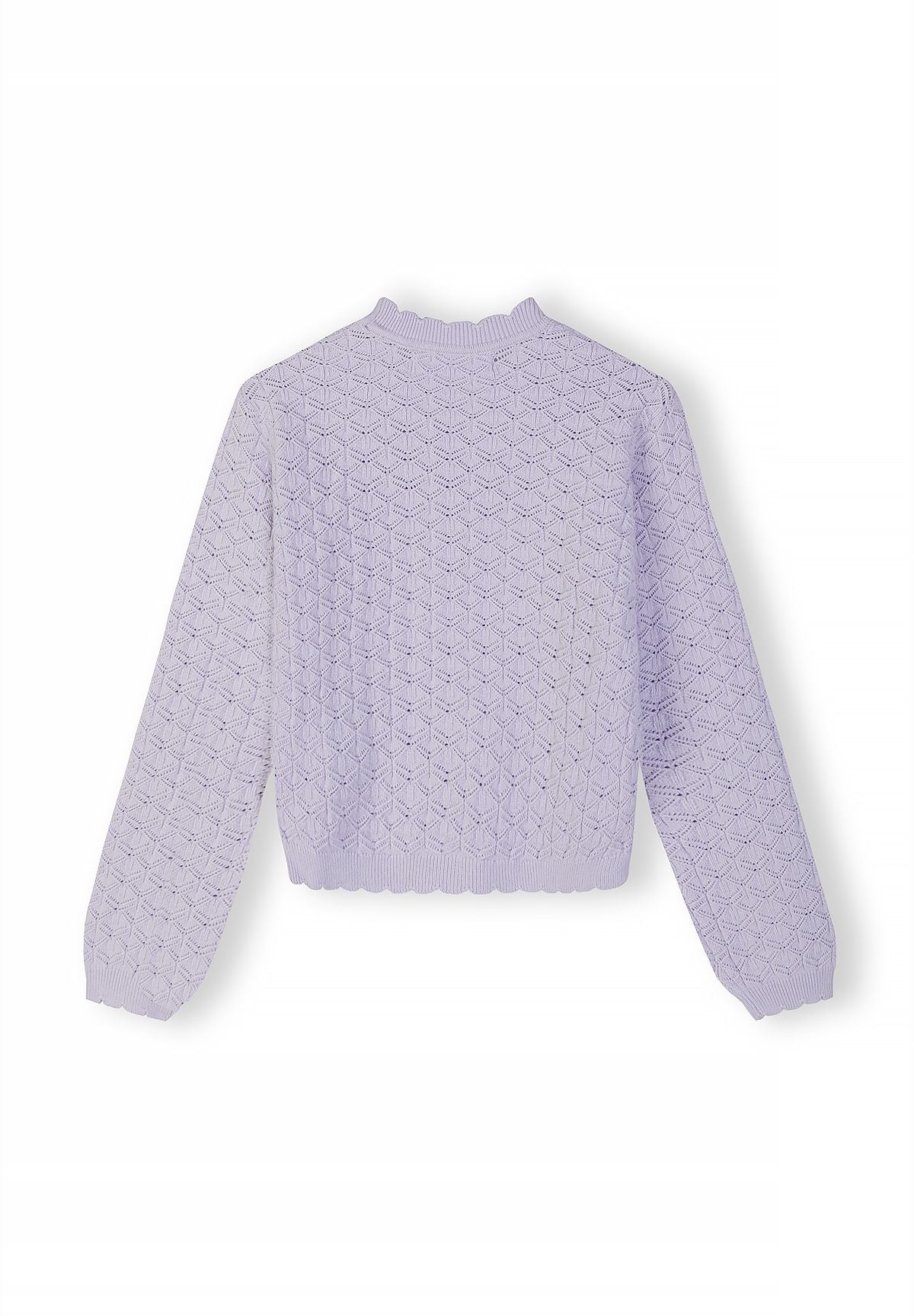 Ten dziewczęcy sweter z delikatnego liliowego dzianiny łączy komfort i trwałość z wyrafinowaną estetyką. Idealny dla dziewczynek w wieku od 3 do 15 lat, wykonany z mieszanki wiskozy, poliestru i nylonu, która zapewnia wytrzymałość oraz gładkie wykończenie powierzchni. Subtelna falowana lamówka przy krawędziach dodaje eleganckiej faktury, a okrągły dekolt i długie rękawy z prążkowanymi mankietami gwarantują schludne, regularne dopasowanie, które zachowuje kształt nawet po wielokrotnym noszeniu, czyniąc go wszechstronnym i praktycznym elementem garderoby na chłodniejsze sezony.