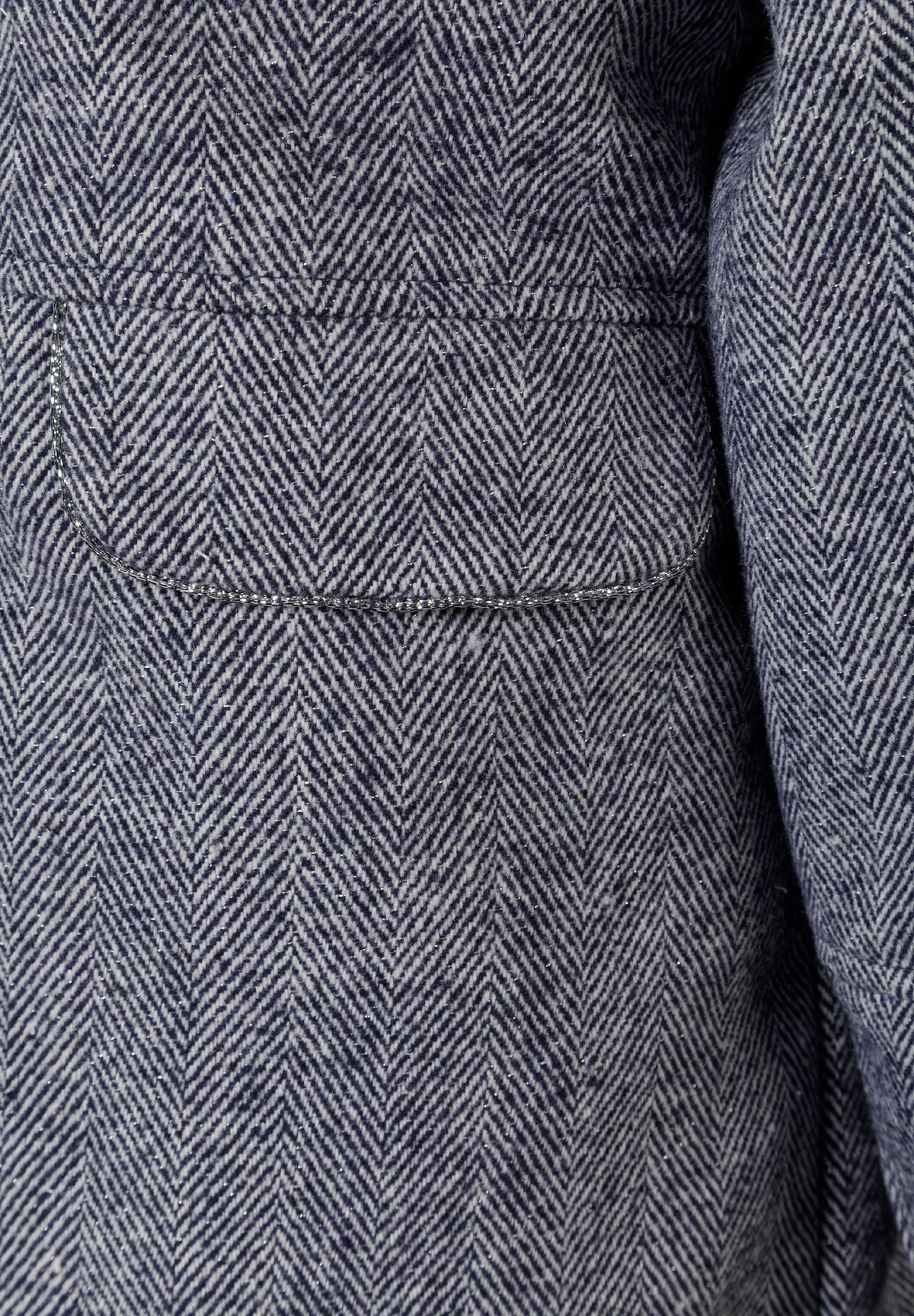 Kurtka pikowana dla dziewczynek, zaprojektowana z myślą o ciepłe i stylu, idealna na chłodniejsze sezony. Kurtka ma klasyczny krój w kolorze granatowym, oferując uniwersalny wygląd na różne okazje. Zewnętrzny materiał łączy wełnę z błyszczącymi włóknami lureksu, nadając delikatny połysk powierzchni. Wewnątrz kurtka posiada miękką podszewkę z futerka syntetycznego dla dodatkowej izolacji. Kaptur wykończony jest dopasowanym futerkiem syntetycznym, co zwiększa komfort i walory wizualne. Zapięcie z przodu zapewnia łatwe ubieranie przy jednoczesnym dopasowaniu. Odzież została wykonana z dbałością o funkcjonalność i trwały komfort na sezon.