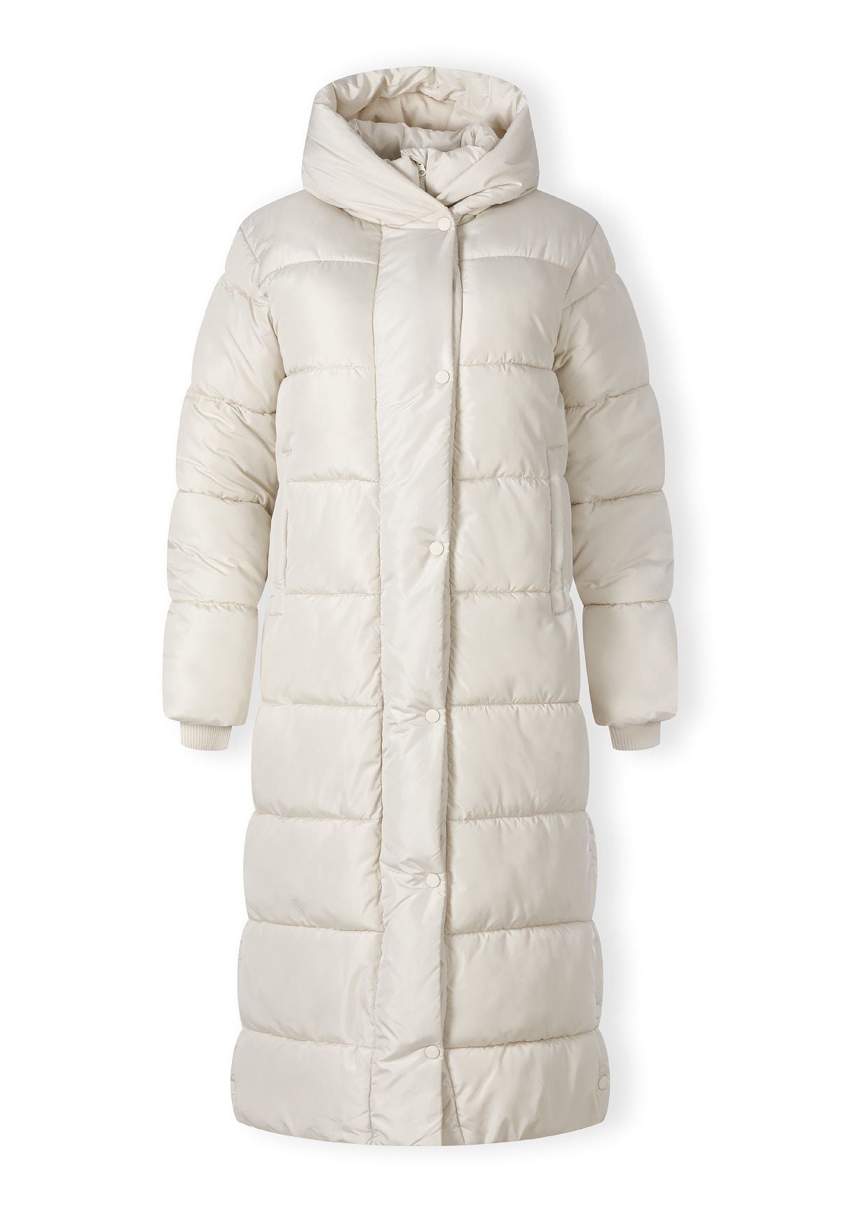 Damska pikowana kurtka maxi w kolorze kremowym została zaprojektowana, aby zapewnić maksymalne ciepło i komfort podczas zimnych sezonów. Jej dłuższy krój oferuje dodatkową ochronę, poprawiając izolację i pomagając zatrzymać ciepło ciała w chłodne dni. Kurtka posiada stójkę oraz przymocowany kaptur, które chronią przed wiatrem i lekkim deszczem. Zamek błyskawiczny z przodu w połączeniu z zatrzaskami pozwala na bezpieczne i regulowane dopasowanie, co czyni ją praktyczną na co dzień zimą. Neutralny kremowy kolor dodaje uniwersalności, łatwo komponując się z różnymi stylizacjami. Pikowana kurtka łączy funkcjonalność ze stylem, zapewniając skuteczną ochronę termiczną przy zachowaniu czystego, minimalistycznego wyglądu, odpowiedniego do różnych aktywności na świeżym powietrzu.
