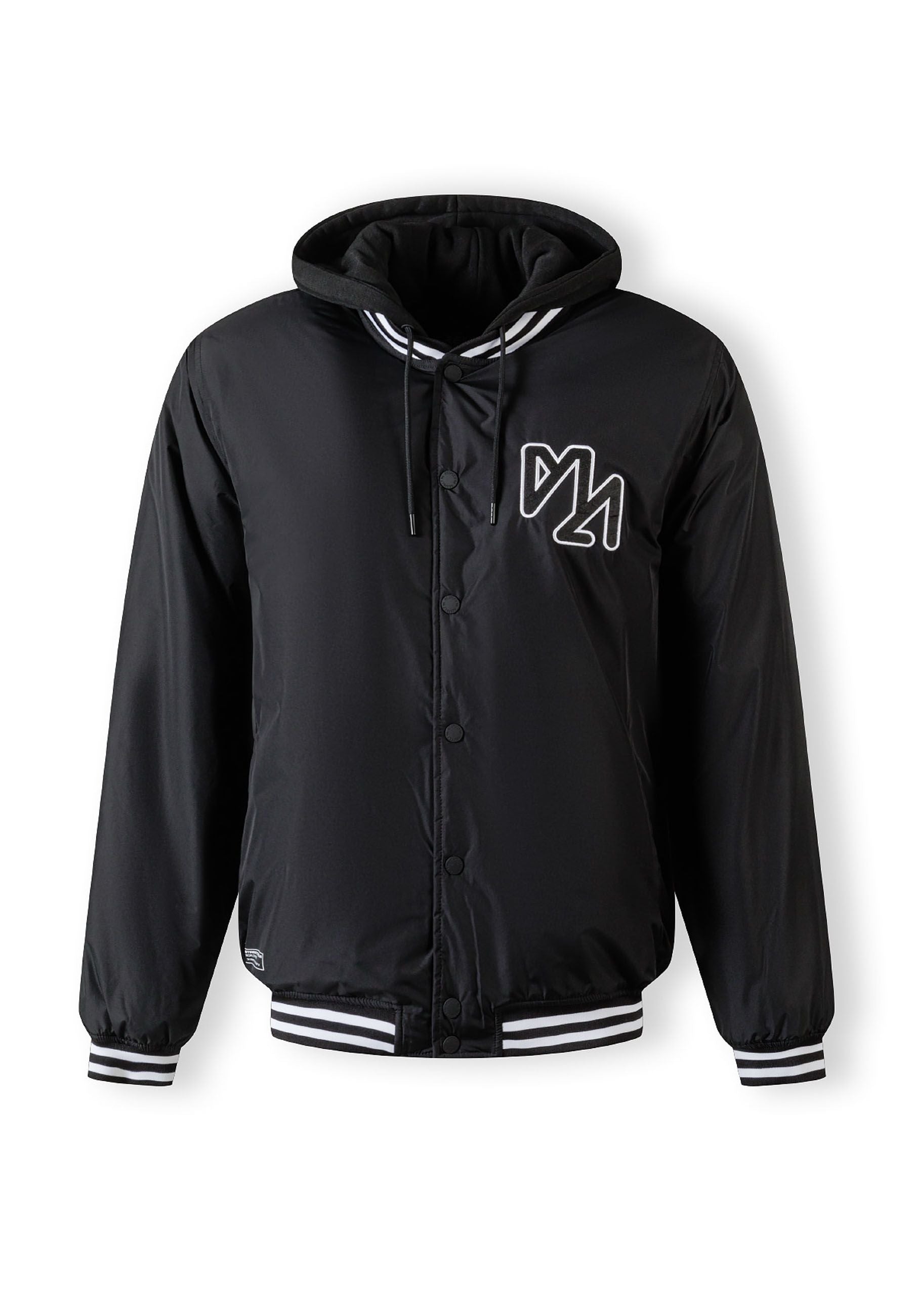 Męska kurtka w stylu baseballowym z odpinanym kapturem czarna
